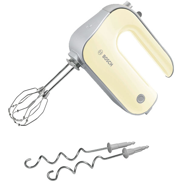 Batedeira e acessórios de fácil limpeza. Todos os acessórios – varas para bater e amassar – são aptos para a máquina de lavar loiça