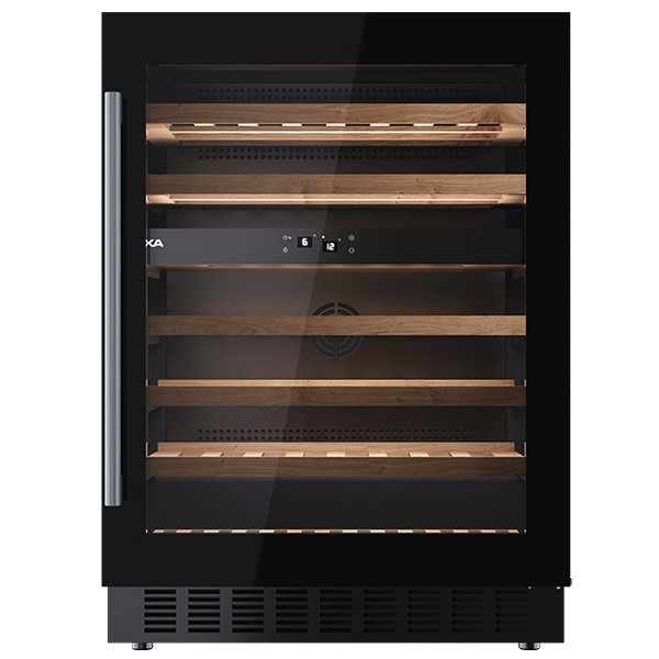 (AXLXP) 82X59,5X61,9CM – 46 GARRAFAS – 2 ZONAS DE TEMPERATURA: 5º-10ºC / 10º-18ºC – VIDRO PRETO