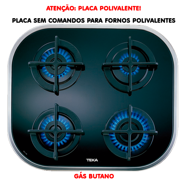 POLIVALENTE – 4 QUEIMADORES A GÁS – LARGURA 60CM – 7,5kW – VIDRO PRETO – GÁS BUT