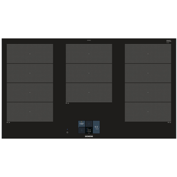 Zonas de cozedura de indução: 1 x Ø 400 mmx240 mm, 3.3 kW (nível de potência máx. 3.7 kW) ou 2 x Ø 240 mm, 2.2 kW (nível de potência máx. 3.7 kW); 1 x Ø 300 mmx240 mm, 2.6 kW (nível de potência máx. 3.7 kW); 1 x Ø 400 mmx240 mm, 3.3 kW (nível de potência máx. 3.7 kW) ou 2 x Ø 200 mm, 2.2 kW (nível de potência máx. 3.7 kW)